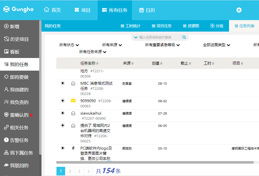 項目全生命周期管理平臺中我的任務列表