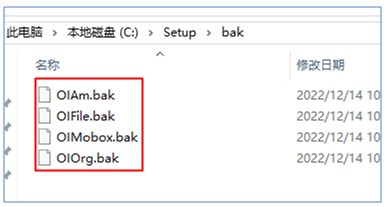 • Bak里面包括4個數據庫(OIAm、OIMobox、OIOrg、Oifile)的bak文件 (參考下圖)