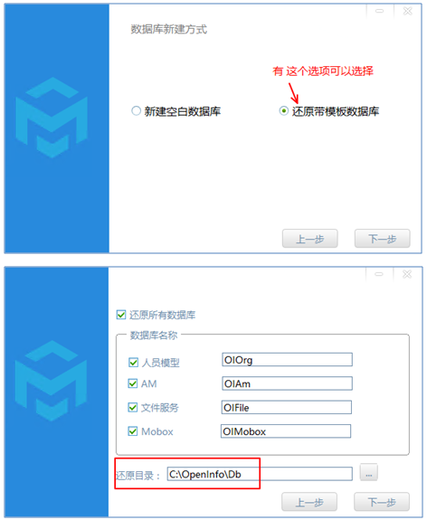 這些其實在企業系統正式部署前,需要做一些基本功能定義,這個定義后 ,最好對 OIAm、OIMobox、OIOrg、Oifile 等4個數據庫進行備份,直接還原到企業服務器上,這樣整體來說數據比較完整及正確。另外也相對方便。(注意:這種mobox還原的模式 只是適合與第一次系統部署。若用戶已經部署過了,已經有自己的數據了,這個bak還原的模式是不適合的,要切記!!