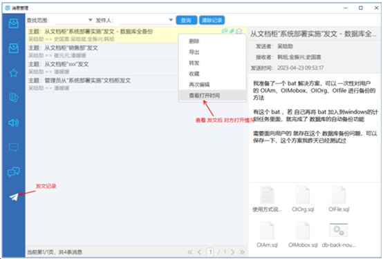 • 接收方會自動收到一個消息提醒,點擊后,就能打開這個發文信息