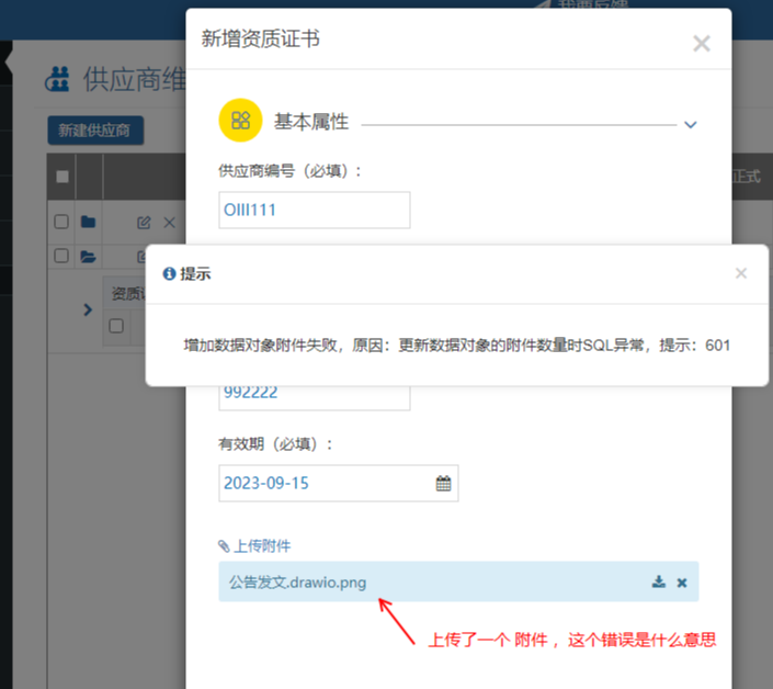 文件上傳:更新數據對象的附件數量時SQL異常,提示:601 2023/09/06 分類:產品中心 問題中心 705 問題描述:(20230906 發現) 若OIDateWebs 升級到 20230614 之后版本 ,而mobox數據對象是之前創建的,并且帶附件。存在OIDateWebs 升級后造成附件上傳異常問題 解決方法: 步驟1)下載OIDataWebS_R_20230905.zip 步驟2)更新OIDataWebS服務 步驟3)將數據對象里面的附件選擇先去掉 ,之后 ,重新添加附件選項 確定后,重新進入 ,將 附件 選項 重新 打上 標簽:問題 上一篇: 低代碼腳本開發-人員選擇 下一篇: 數據庫還原成功后(狀態為:關閉,正常),服務無法鏈接