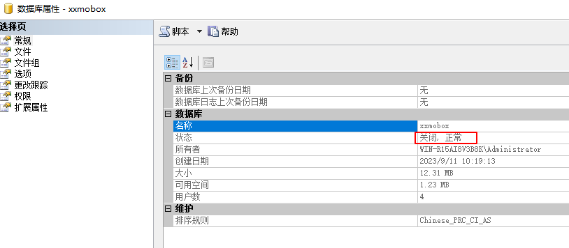 今天遇到一個非常詭異的現(xiàn)象,xxmobox數(shù)據(jù)庫還原后提示成功,但這個數(shù)據(jù)庫無法被dns服務(wù)鏈接。經(jīng)過分析發(fā)現(xiàn) xxmobox數(shù)據(jù)庫狀態(tài):關(guān)閉,正常