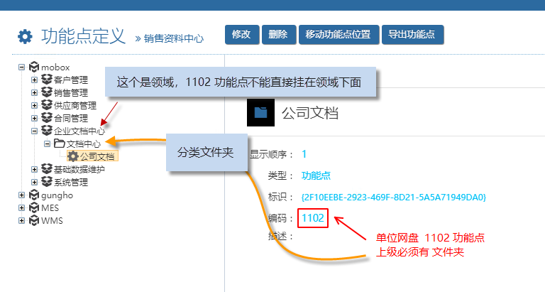 在設(shè)置的Mobox文檔中心的時(shí)候,功能點(diǎn)不能直接掛到領(lǐng)域下面,而必須在領(lǐng)域下面先建立分類文件夾,之后才能掛接這2個(gè)功能點(diǎn)。