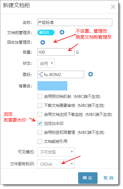 新增文檔柜 點擊后,需要注意的參數(shù)設(shè)置