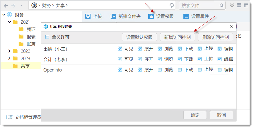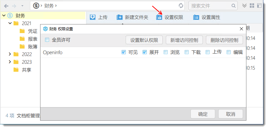 1)設(shè)置文檔柜的文檔基礎(chǔ)權(quán)限