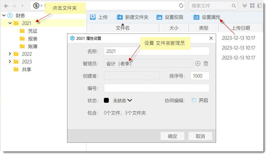 2)創(chuàng)建(文件夾),并設(shè)置可設(shè)置文件夾管理員