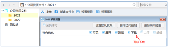 公司資質(zhì)文件\2021 文件夾,里面引用的文件,不能下載,只能瀏覽 (因為引用文件的權(quán)限來自其原始文檔柜里面的權(quán)限設(shè)置,與當(dāng)前文件夾權(quán)限設(shè)置無關(guān))
