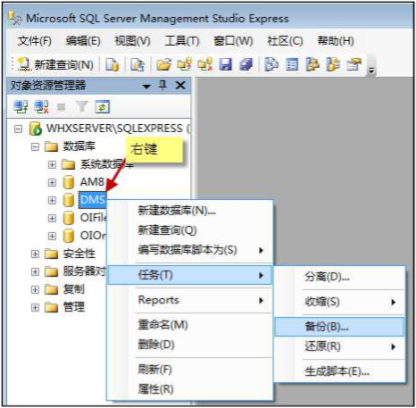 舉例:對Mobox系統的數據庫(老版本是DMS,新版本是 OIMobox ,這個根據實際情況)進行備份