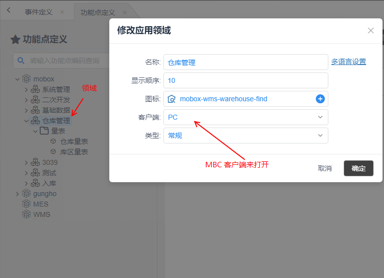 2、mobox3定義的功能領域可以發(fā)布到 MBC客戶端