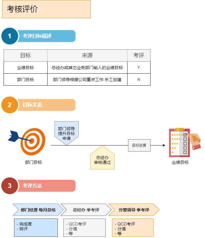 公司總體目標與績效目標一致,支持在線多維考評(部門經理先自評 – 分管領導評價 – 總經辦評價 ),支持KPI+OKR集合等,形成正確導向和激勵。(不是所有的工作都需要考評,而是可以根據企業只要需要個性設定)